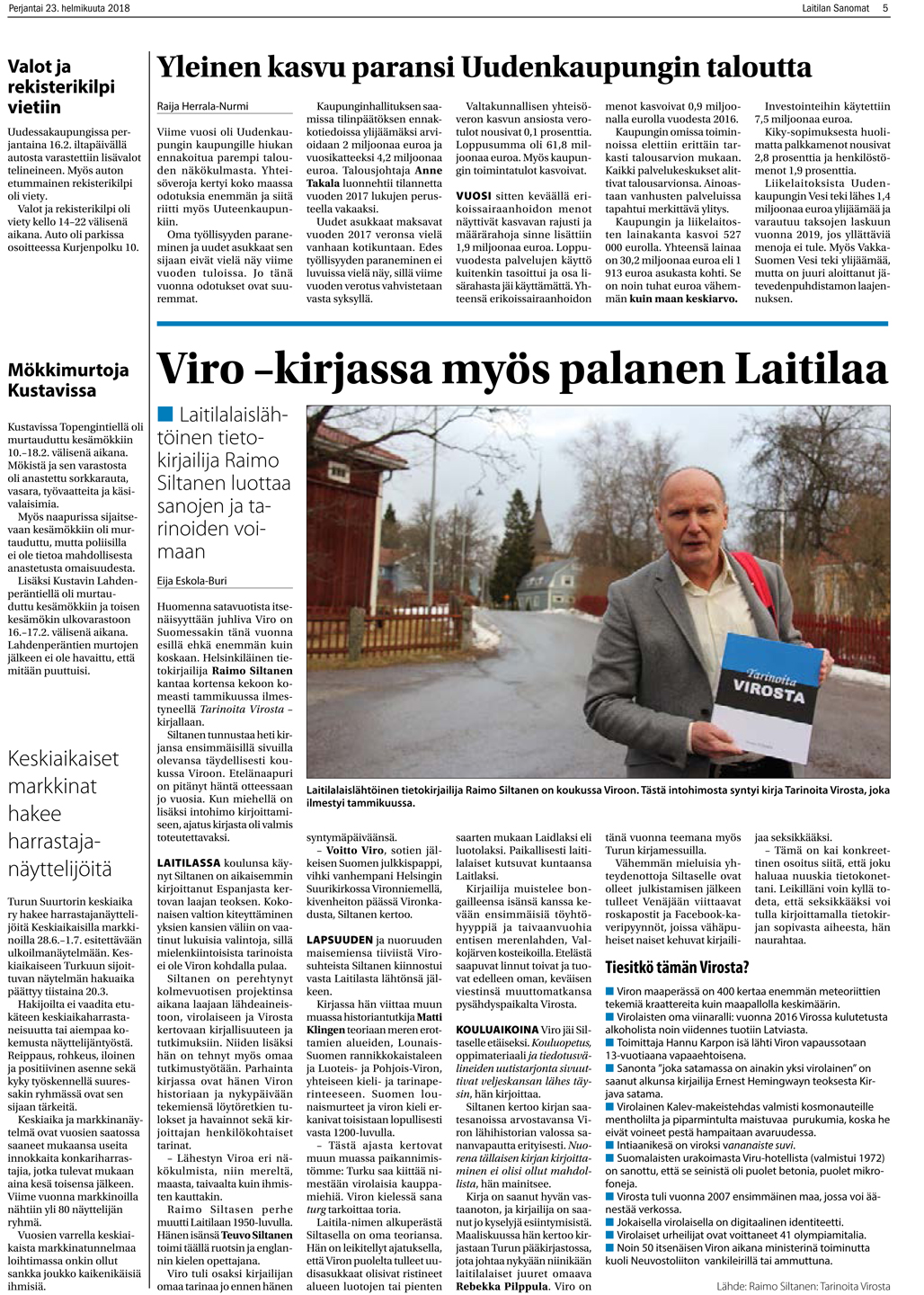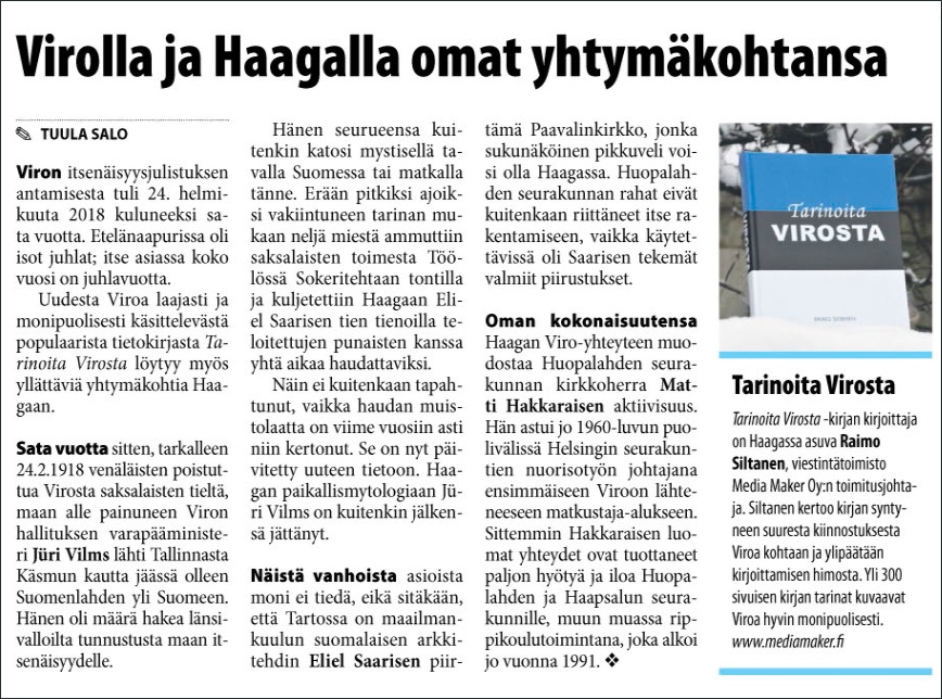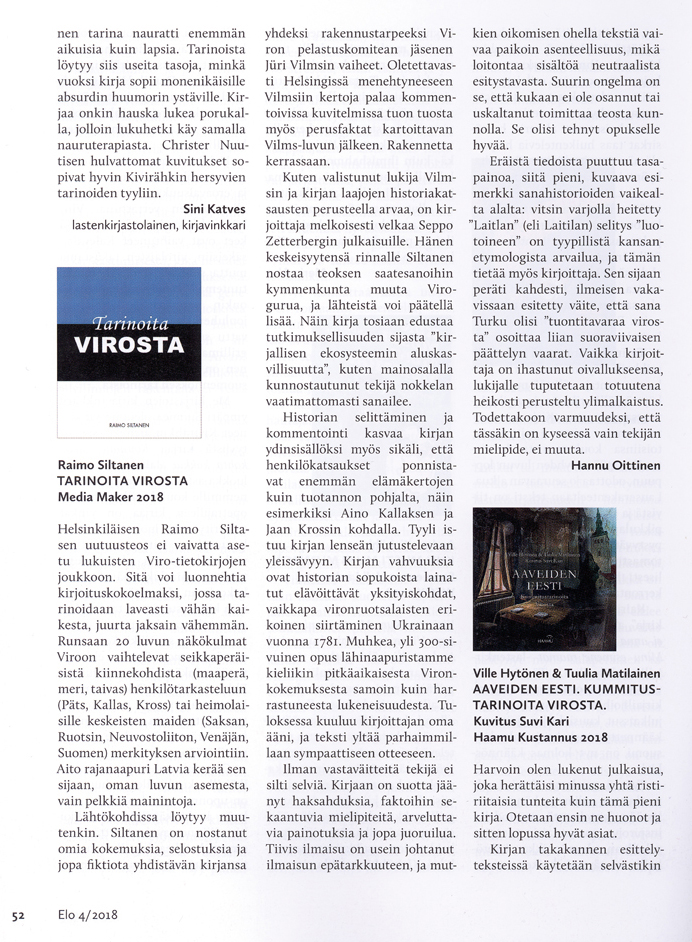 Tarinoita Virosta ilmestyi Viron viettäessä itsenäistymisensä satavuotisjuhlavuotta.