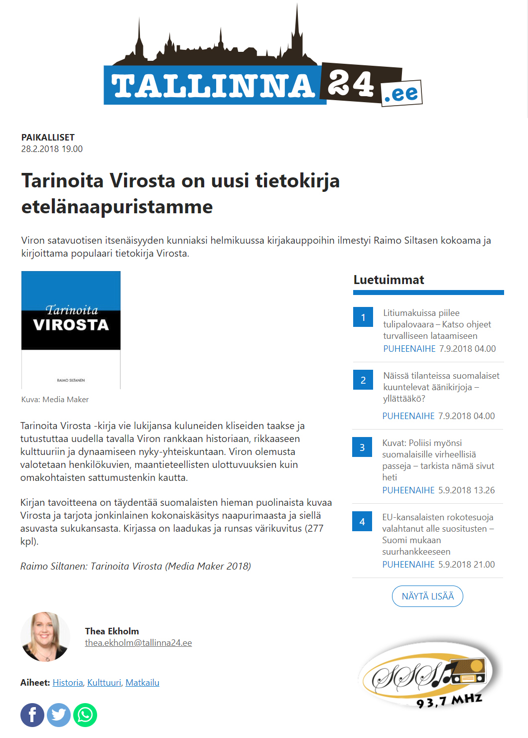 Laadukas ja runsaasti kuvitettu teos puhuttelee jokaista Virosta kiinnostunutta ja sopii aivan erinomaisesti lahjakirjaksi.