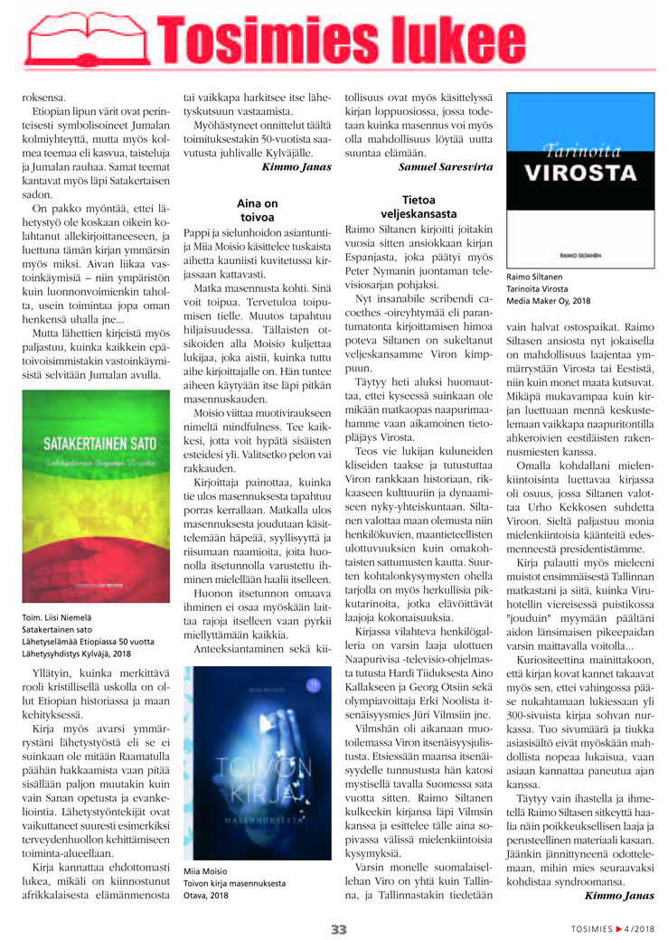Kirja on saanut hyviä arvioita. Niihin pääsee alla olevista linkeistä: