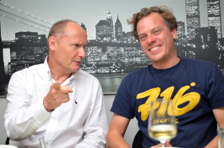 Le Roux saapui Suomeen syyskuun puolivälissä tehtyään sitä ennen kierroksen Virossa. Helsinkiin hän tuli kehittääkseen sivustoaan ja sen markkinointia. Näistä hän oli sparraillut jo aiemmin Media Makerin toimitusjohtajan Raimo Siltasen (kuvassa vas.) kanssa miesten tavattua aiemmin tänä vuonna Valenciassa. Mukana keskusteluissa olivat myös suositun suomalaisen Anna ja Sebastian -life style blogin pitäjät Anna ja Sebastian.